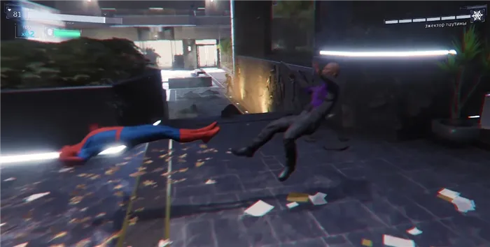 В этой игре вас ждёт нормально проработанная система комбо-ударов. Причём она идеально сочетается с объектами, окружающими Паучка. Он может пролезать меж ног противников, отскакивать и атаковать их со стен, притягивать паутиной. Количество уникальных комбинаций просто огромное.
