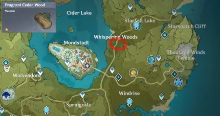 Ароматный кедр в Genshin Impact можно найти в Волчьем куполе и Шепчущем лесу.