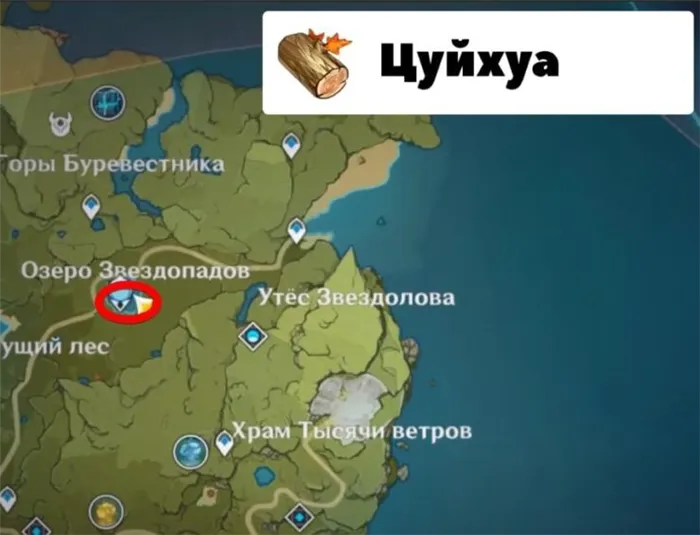 Второе место, где Березу можно найти на карте в Genshin Impact.