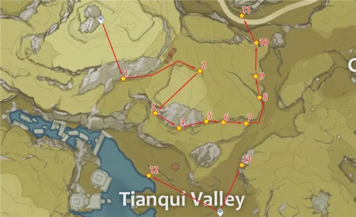Если вы пройдете все точки по маршруту, показанному на изображении ниже, вы соберете 15 Kor Lapis.