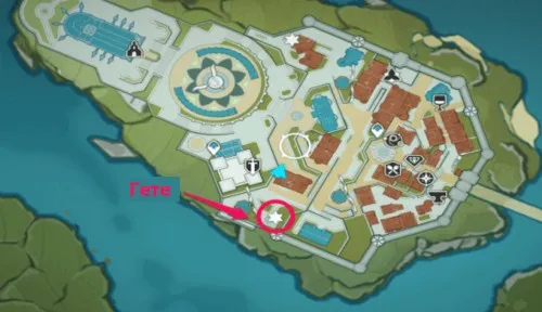 Этот персонаж отвечает за гостиницу Гете в Мондштадте. Можно найти в месте, показанном на рисунке ниже:.
