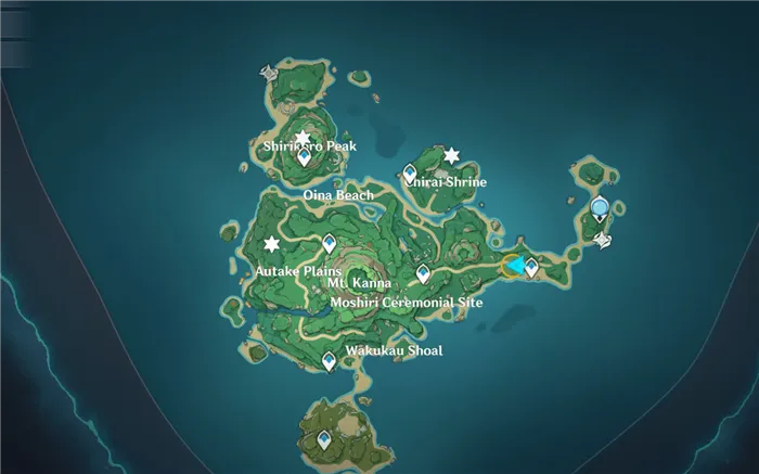 Телепортируйтесь прямо на остров Цуруми и откройте карту — вы увидите, что вся территория снова покрыта туманом, но только семь статуй остаются доступными по метке.