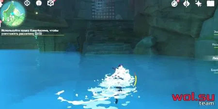 Включите памятники, чтобы частично спустить воду. Для активации всех четырех памятников требуется около 15 секунд. Самая простая активация — это использование Фишля или Лизы.