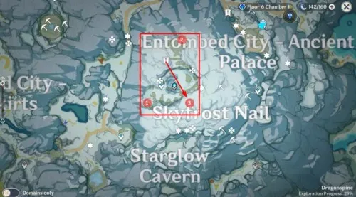 Второй фрагмент находится к юго-западу от хребта Драконьего хребта в пещере Старлайт. Чтобы найти его без проблем, определите, где находится вершина хребта, и бегите в указанном направлении (юго-западное направление ведет в левый нижний угол карты).