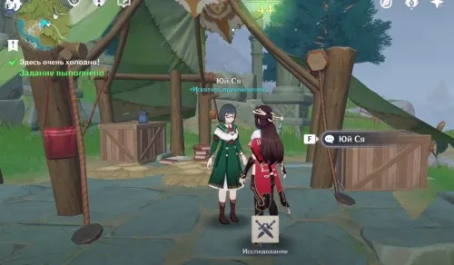 Чтобы получить этот поиск, отправляйтесь в лагерь у Хребта Дракона, который пересекает сторону Мондштадта, и посоветуйтесь с Ю Ся. Затем перейдите в новую зону и возьмите на себя выполнение первой части задания. Там вам нужно будет найти три замороженных фрагмента. На рисунках ниже показано, где найти Ю Ся.