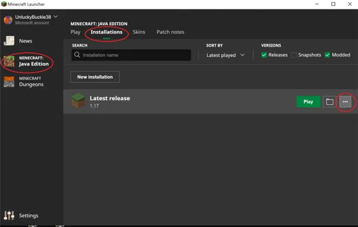 2) В пусковой установке выберите нужную версию игры и нажмите кнопку Play.