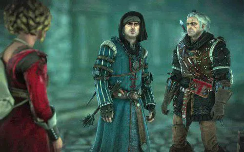 Но побег по сценарию с Арианом не пойдёт. В камеру войдёт посол Нильфгаарда Шилярд Фиц-Эстерлен с охраной из рыцарей-арбалетчиков. Геральт может среагировать на него одним из высказываний:
