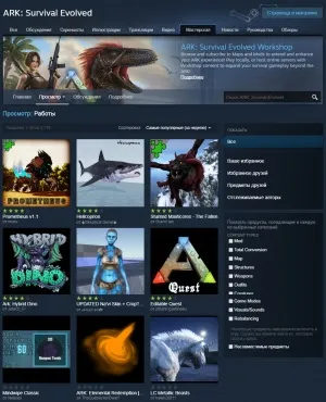 - Зайти в Steam и перейти в Мастерскую по ARK Survival Evolved.