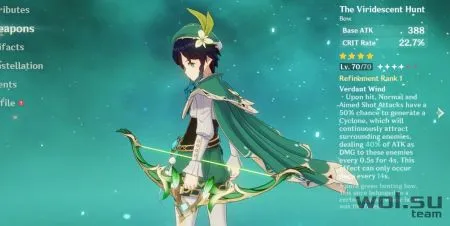 Зеленый лук — это 4-звездочное оружие в коллекции основного оружия. Лук имеет следующие характеристики