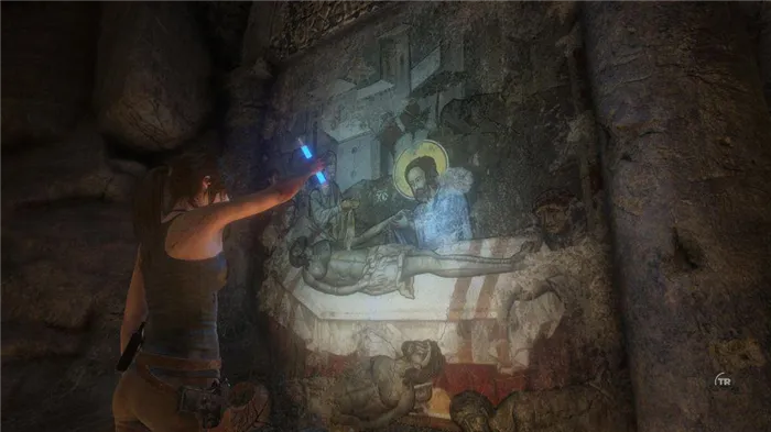 Прохождение ‘Лара Крофт’ 2016 начинается с развития полученных навыков, героине предстоит двигаться вдоль скалы в пещеру. Затем Лара отправляется в комнату и пытается расшифровать послание. Чтобы понять надпись, она должна изучить несколько фресок и, освоив первые шаги греческого знания, прочитать ее и найти тайное место с деньгами.