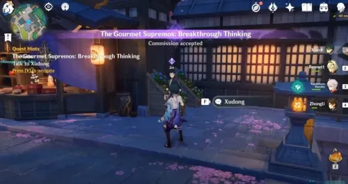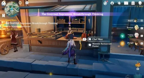 После получения необходимых квестов отправляйтесь в Город Молний и поговорите там с Сюй Чжэном. Он стоит возле приемной Гильдии путешественников. Пообщавшись с ним некоторое время, телепортируйтесь в порт Ли Юэ и отправляйтесь в ресторан People’sChoiceRestaurant. Там вам нужно будет пообщаться с шеф-поваром Мао.