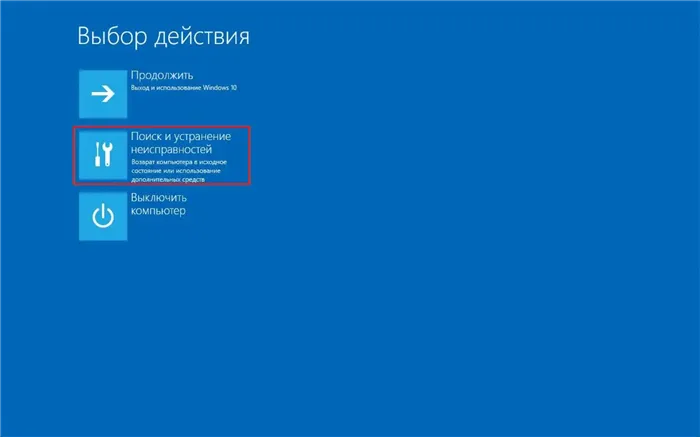 После перезапуска вам будет предложено выбрать вариант решения проблемы. Выберите «Устранение неполадок».